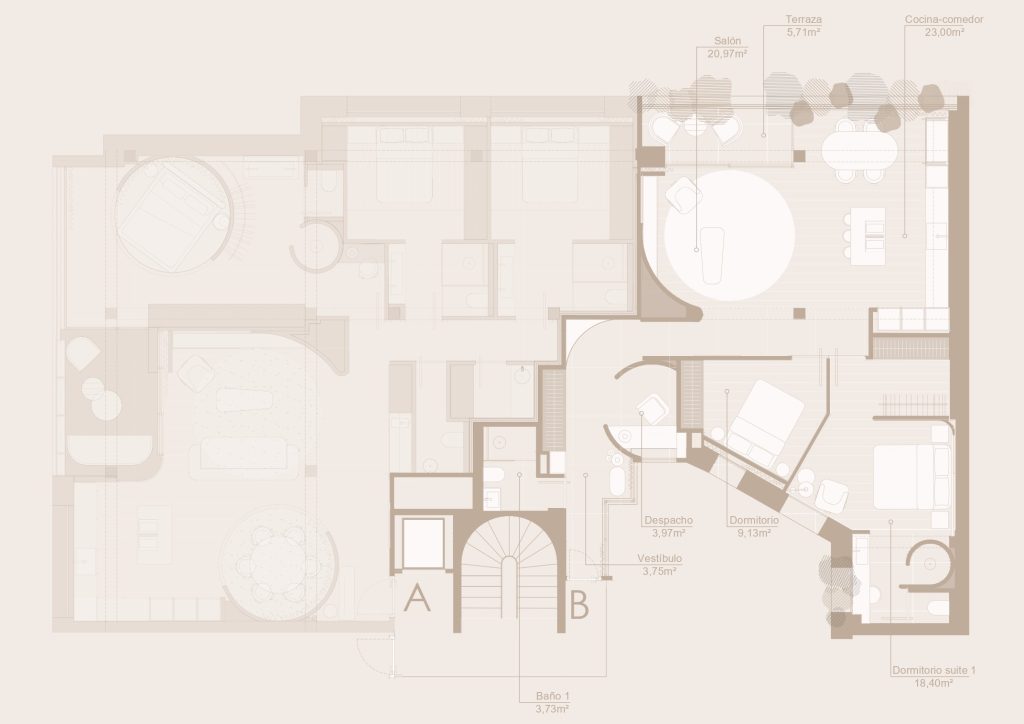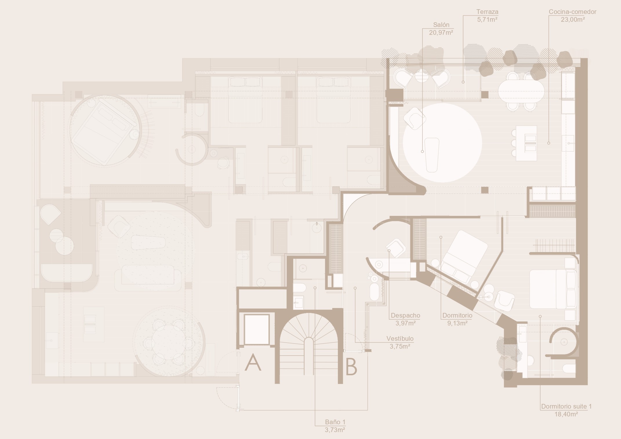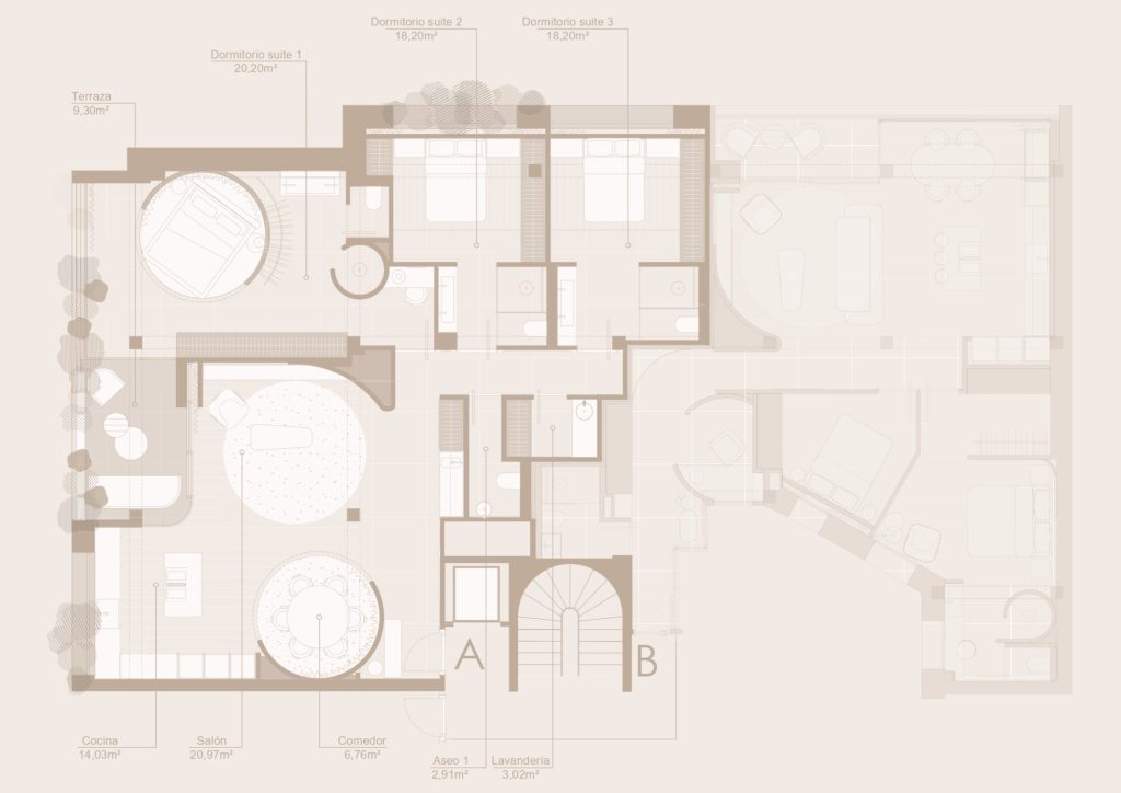 La intervención en Paseo de la Castellana, 105, busca transformar una amplia vivienda en dos hogares lujosos e independientes, equilibrando elegancia y funcionalidad. Se pretende crear espacios exclusivos que destaquen las vistas al estadio Santiago Bernabéu, cuidando cada detalle para lograr una estética sofisticada mediante la combinación de arquitectura e interiorismo.