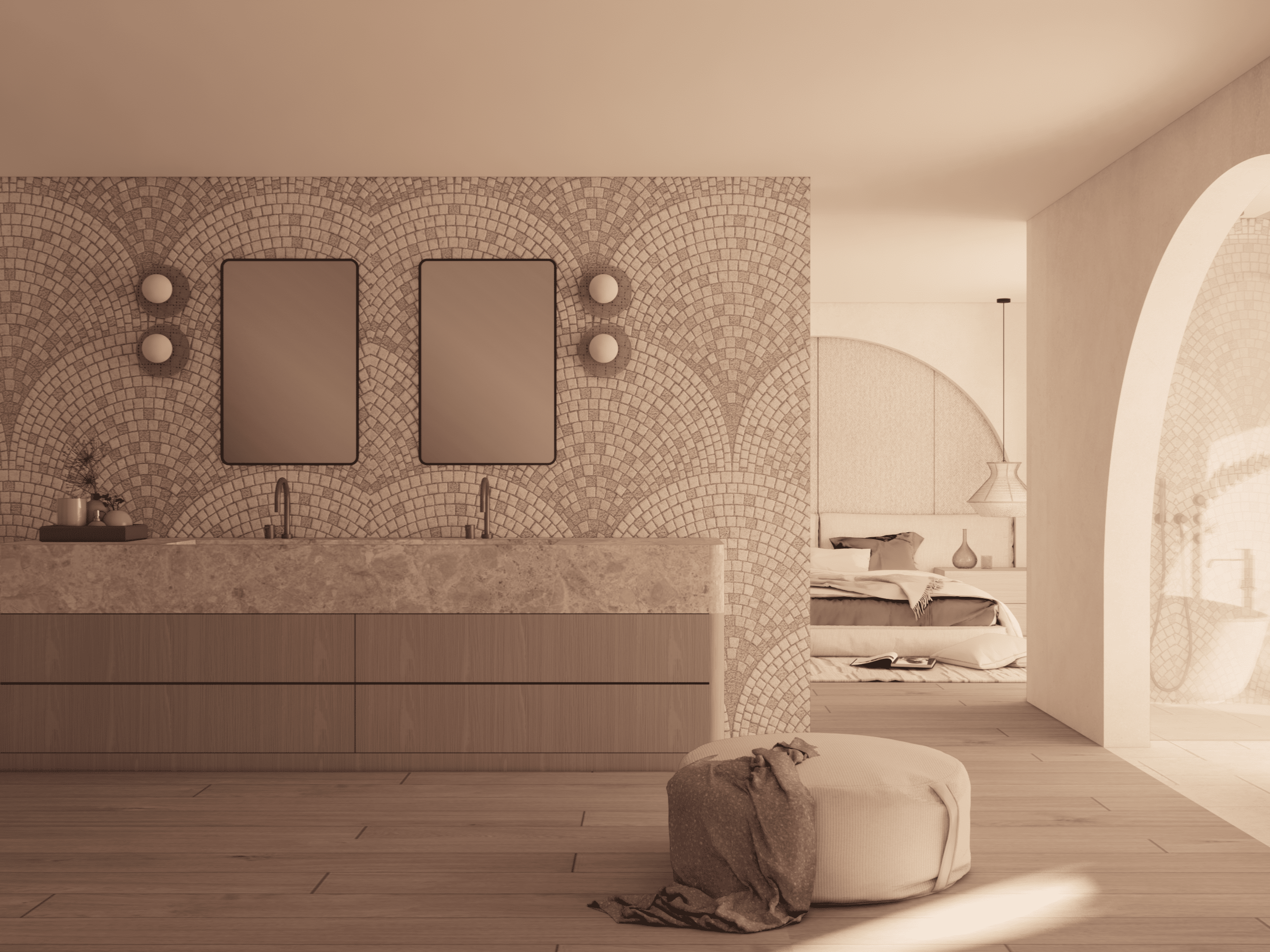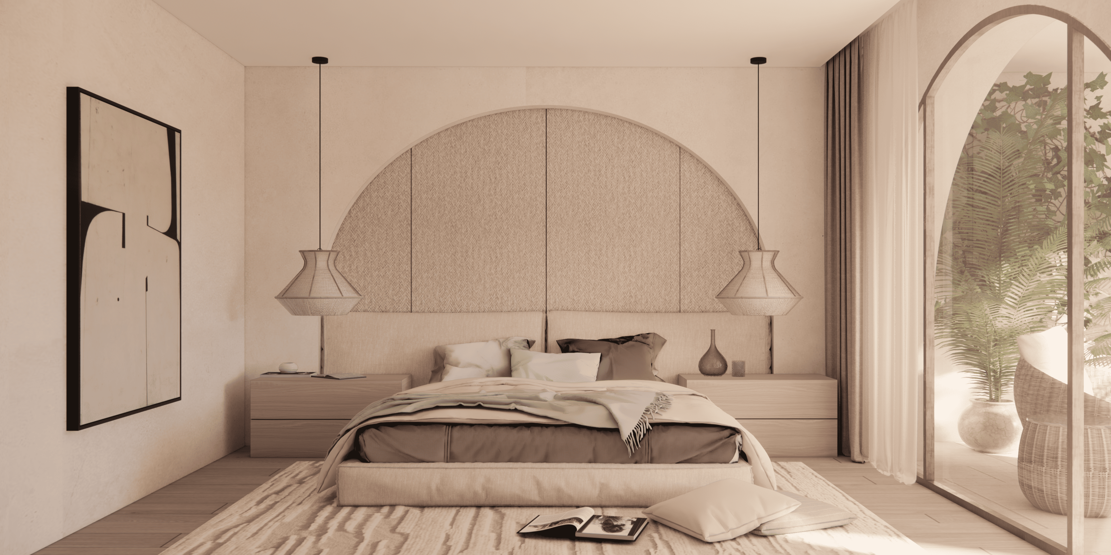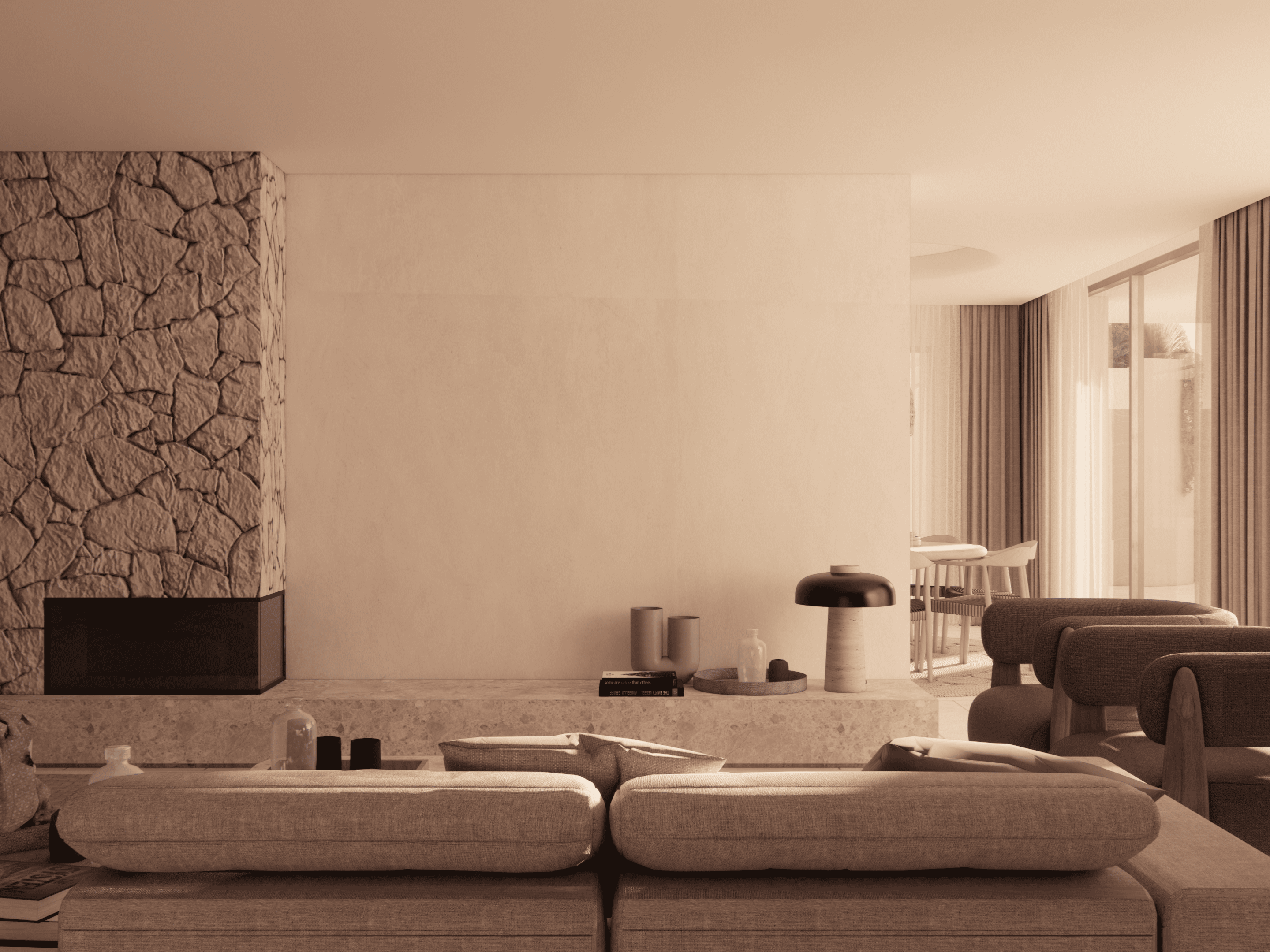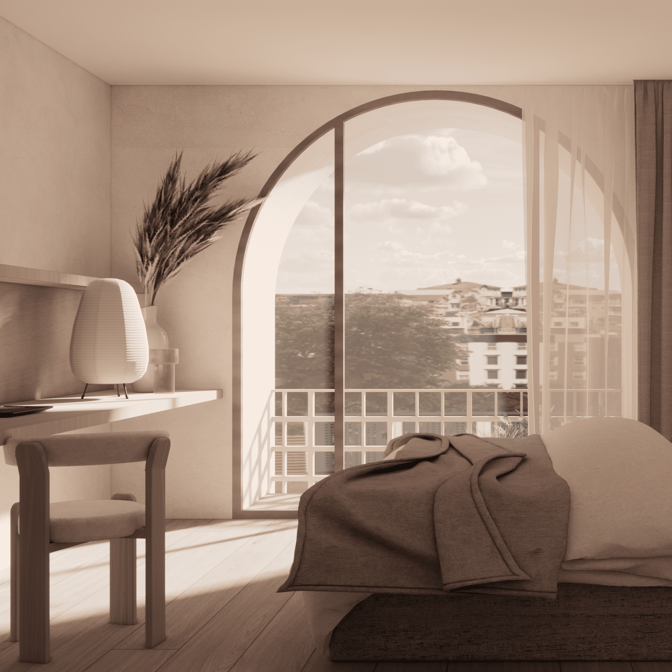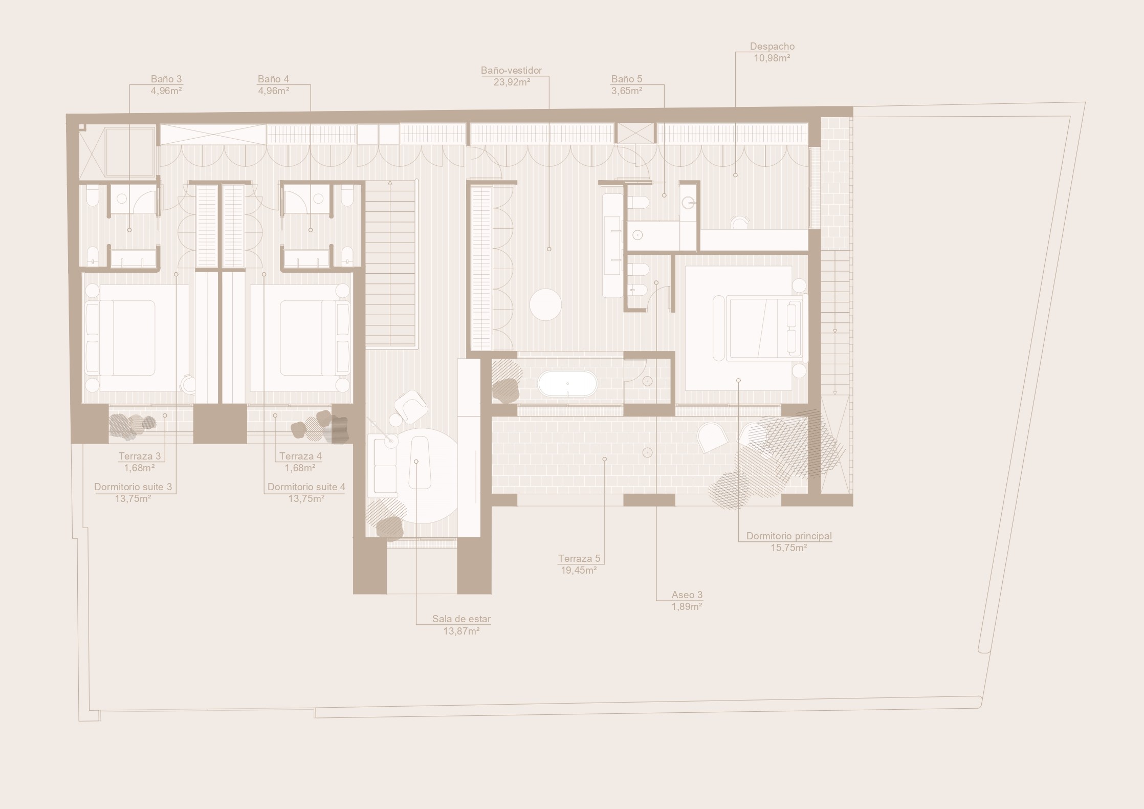En las terrazas, no solo enmarcan las vistas y guían la luz hacia el interior, sino que también favorecen el confort climático al permitir la circulación de aire y servir de barrera parcial contra el sol. Estos elementos crean una atmósfera cálida y serena, donde la modernidad y la tradición se integran, generando un espacio armónico que refleja el espíritu mediterráneo.