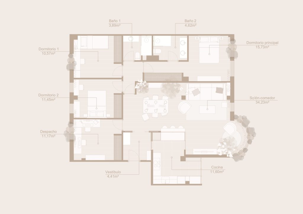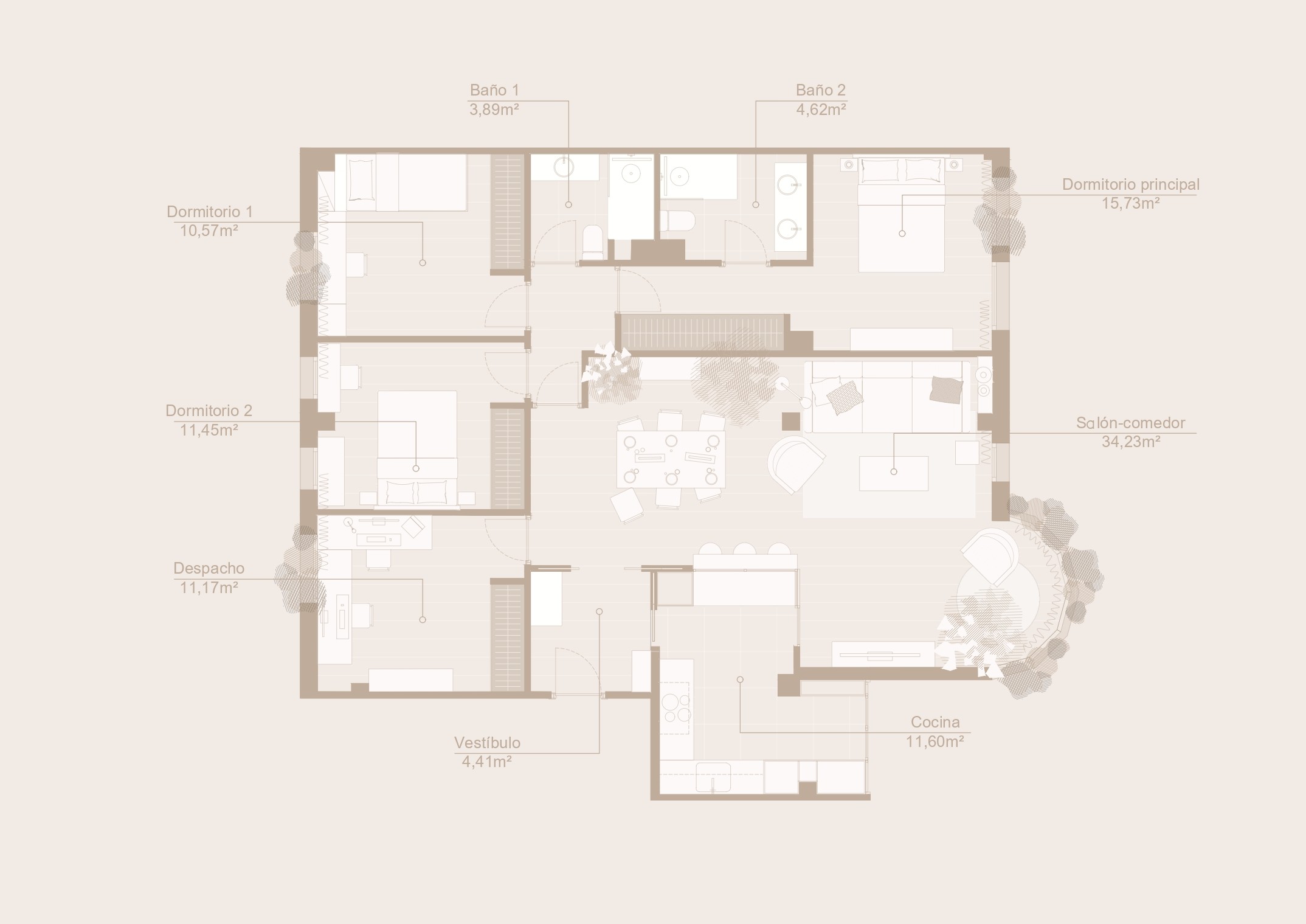 La apertura de la cocina al salón ha creado un espacio amplio y continuo que fomenta la interacción familiar. Esta nueva disposición permite que la luz natural del ventanal se expanda hacia la cocina, generando un ambiente cálido y acogedor. La integración ha transformado la vivienda en un hogar conectado, donde cada área es funcional y está unida.